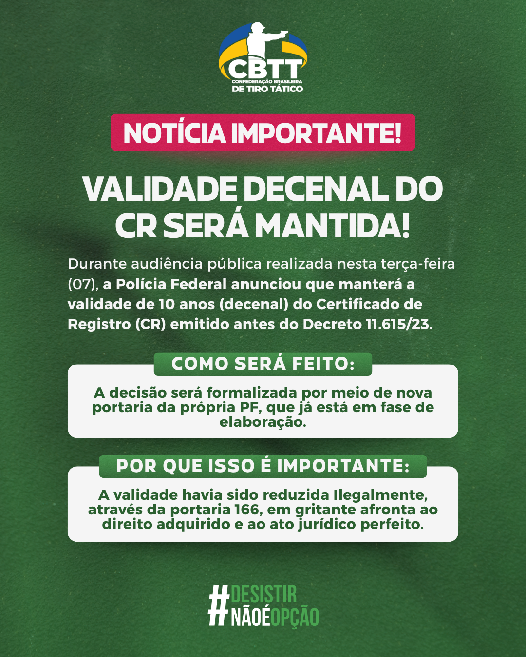 #CBTT #DesistirNãoÉOpção #CAC #PoliciaFederal #TiroTático #Liberdade #CRDecenal #Vitória #DireitoAdquirido #Brasil