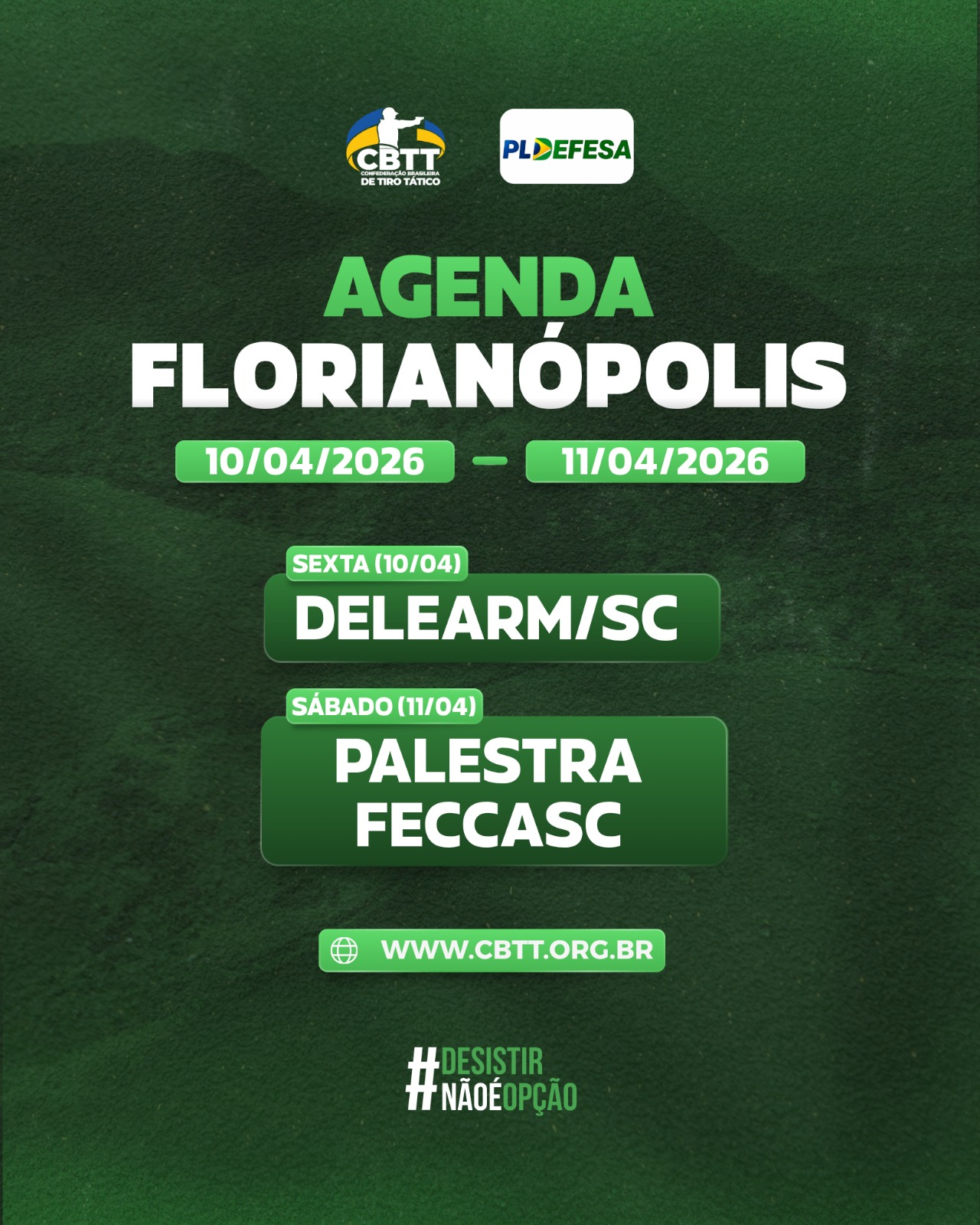 A Confederação Brasileira de Tiro Tático (CBTT), em parceria com o PL Defesa, estará em Florianópolis nos dias 10 e 11 de abril de 2026 para cumprir uma agenda estratégica voltada à defesa dos CACs (Colecionadores, Atiradores e Caçadores) do estado de Santa Catarina.