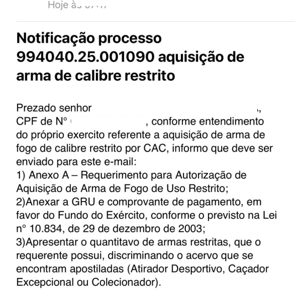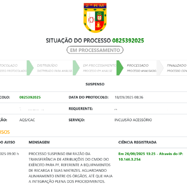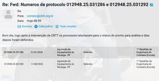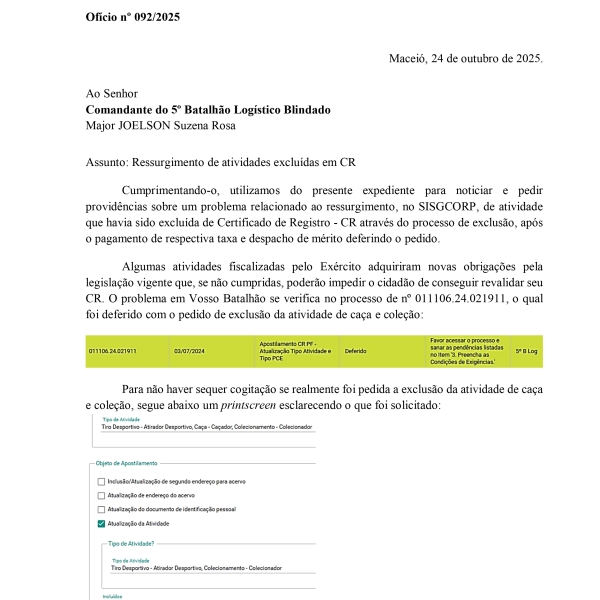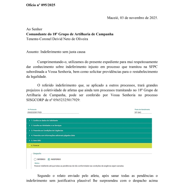 A Confederação Brasileira de Tiro Tático (CBTT) havia enviado o Ofício nº 095/2025 ao Comandante do 18º Grupo de Artilharia de Campanha denunciando um indeferimento