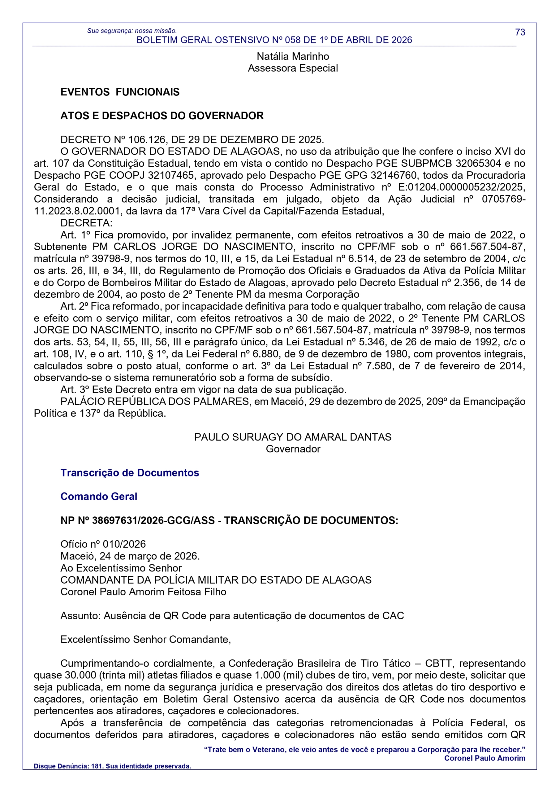 Foi oficialmente publicado no Boletim Geral Ostensivo da Polícia Militar de Alagoas o entendimento de que a ausência de QR Code nos documentos não invalida sua legalidade, nem pode gerar prejuízo ao cidadão.